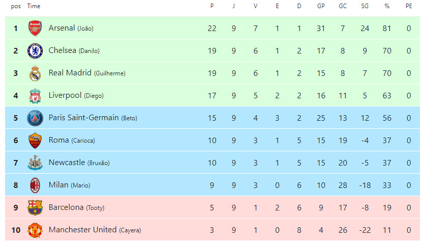 Quem se deu mal e voltou para casa mais cedo foram os times Roma (Carioca), Juventus (Lucas), Real Madrid (Guilherme) e Bayern Muchen (Roger).
