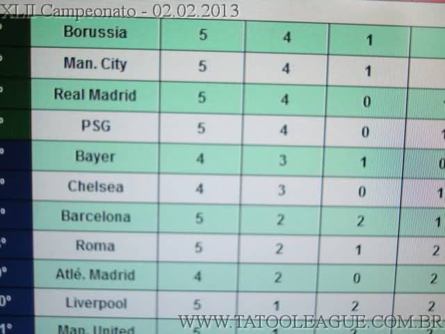 | Borussia Dortmund | 0 | X | 0 | Atlético De Madrid | 1º Turno | 6º |