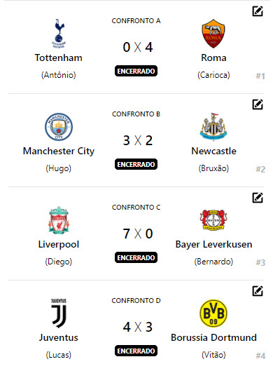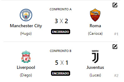 Destaque para o jogo entre os técnicos Diego e Lucas, onde o técnico Diego, a frente do Liverpool, aplicou um goleada de 5 x 1 na Juventus do técnico Lucas.