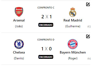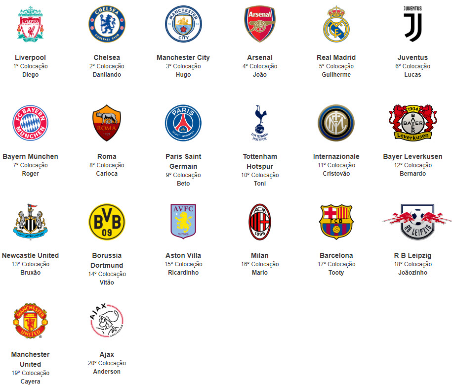 Quem se deu mal e voltou para casa mais cedo foram os times Roma (Carioca), Juventus (Lucas), Real Madrid (Guilherme) e Bayern Muchen (Roger).